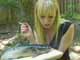 | Chloe is in the mood for some torture…and this lucky catfish just happened to be in the wrong place at the right time. Lucky for her! Chloe is looking fabulous in a flowing black skirt with high heel black strappy sandals, and she has some special ideas for torture today. She fastens the fish with a nail to a wooden board while she enjoys her cigarette. Her smoke leftovers are blown directly from her luscious lungs into the fish's face. It is used as her ashtray getting burned as she puts her cigarette out. In the second segment it is time to move on to bigger and better things. You get a split screen view of Chloe in the car and another view of the fish. The fish is forced to take in all the exhaust of the Cadillac while still stuck to the board flipping all over the place. You get to see long lingering looks of Chloe’s sexy legs as she blasts the pedal, and the exhaust all over the fish. There are plenty of close-ups of her pretty pink toes as she revs the car over and over! Looks like the fish will fulfill the ultimate purpose to be Chloe’s dinner when it is completely fried under her exhaust. 30 min. |