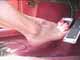 | Chloe tries on several pairs of black strappy high heels, finally deciding on a pair to wear out shopping that day. She heads out to the car as we watch from the passenger seat while she gets into the 1980 Honda Civic. She pumps on the clutch noticing the squeaking sound and figures this car hasn't been driven for a while as she starts it up and lays heavy on the gas pedal giving off a nice loud revving sound. Her feet expertly work the pedals with great views of her red polished toenails in her sexy strappy heels. Chloe's feet are getting very hot with all this pedal action and she feels the need to pull over and remove her shoes. Now she really wants to rev it and her bare feet aggressively lay on the gas as she pulls back onto the road. There is so much traffic Chloe is getting annoyed but it makes for lots of activity on the pedals between the gas, clutch and brake. She finally arrives at the mall and heads out for a day of shopping. When she comes back to the car Chloe starts right out with no shoes on at all. Her bare feet know what to do as she starts up the engine and revs on the gas. Another lively drive on the pedals as we gaze at Chloe's pretty feet and high arches doing all the work to get us back home. 40 min. |